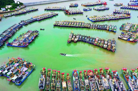 9月14日,無人機鏡頭下,近千艘整裝待發的漁船有序停泊在臺州溫嶺中心漁港箬山港區。長達4個半月的東海伏季休漁期將于9月16日結束,連日來,溫嶺中心漁港箬山港區碼頭一片繁忙,漁民們忙著將各種生產生活物資搬上漁船,一艘艘外海漁船蓄勢待發,等待開漁的到來。(劉振清)