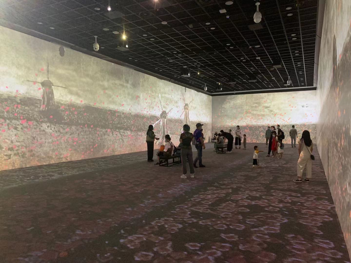 “莫奈是‘追光藝術大師’,我們利用300多平方米的沉浸式主廳,制作了30多分鐘的高科技全息全景影像,將他的作品分為春夏秋冬四個主題,讓觀眾可以全方位體驗并穿行在莫奈描繪的春夏秋冬美景里!蹦嗡囆g沉浸式體驗負責人譚甯說。