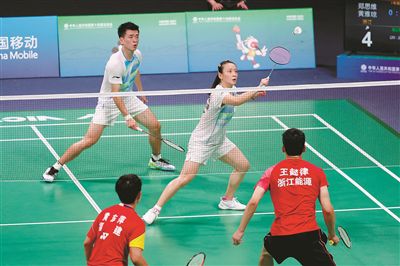 9月17日的全運會羽毛球賽場,成了名副其實的“浙江主場”。五場決賽中,有三場比賽都有浙江選手出場:女子單打的陳雨菲、混合雙打的“雅思”組合鄭思維/黃雅瓊以及王懿律、男子雙打的王昶/周昊東。