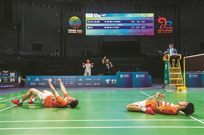 都說最好的劇本都來源于生活,這場全運會的決賽過程更是詮釋了這個道理。決賽中,進入狀態更快的“黃鴨”組合,迅速進入自己的比賽節奏,在一番拉鋸之后,以22比20先下一局。而第二局,“雅思”組合也迅速調整了狀態,一直將領先優勢保持在5分左右,最終以21比15扳回一局。在決勝局中,“雅思”組合用一波5比0開局,并曾經將分差拉大到7分,但“黃鴨”組合之后連續追分并反超,最終以21比17拿下決勝局,總比分2比1獲得金牌。無論是從比分和場面,還是過程中的跌宕起伏,這場決賽都堪稱是東京奧運會兩對組合那場“中國德比”的完美復制。