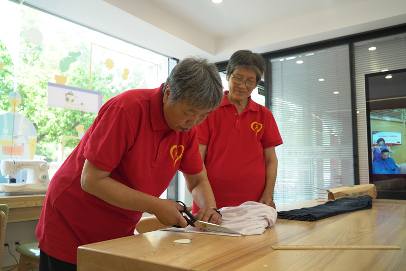 “暖心社”成員為社區群眾縫補衣物。余慧強攝