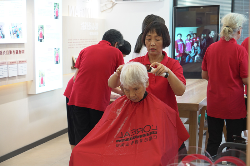 “暖心社”成員為社區群眾提供理發服務。余慧強攝