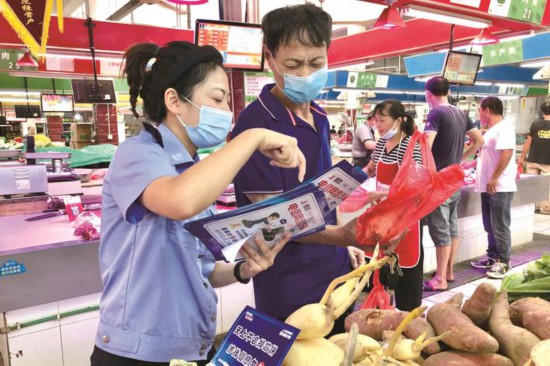 中秋節期間,嘉興平湖市獨山港鎮綜合市場的賣藕攤位上都新添了反詐貼紙。獨山港有在中秋節當日吃藕的風俗,獨山港派出所反詐小分隊借此機會在賣藕攤位上擺放反詐貼紙,并向前來買藕的居民發放反詐宣傳資料,提升居民反詐意識。(張丹燕)