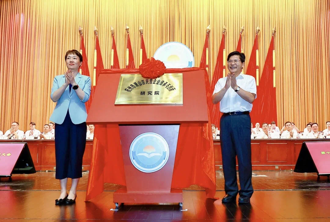 杭州市委副書記、蕭山區委書記佟桂莉,杭州師范大學黨委書記陳春雷在數百位蕭山民營企業家的見證下為研究院揭牌。