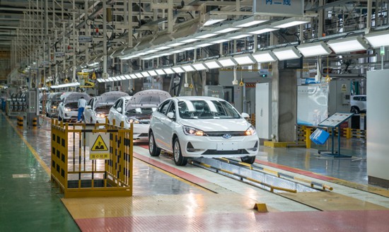 在奇瑞新能源汽車股份有限公司合肥分公司的生產車間內,一輛輛新能源純電動汽車在這里完成組裝,運往全國各地。