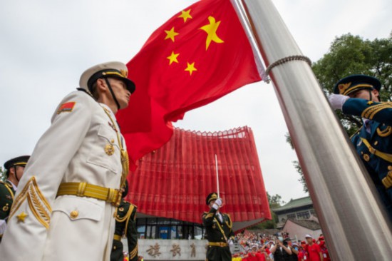 8時02分,鮮紅的五星紅旗冉冉升起。