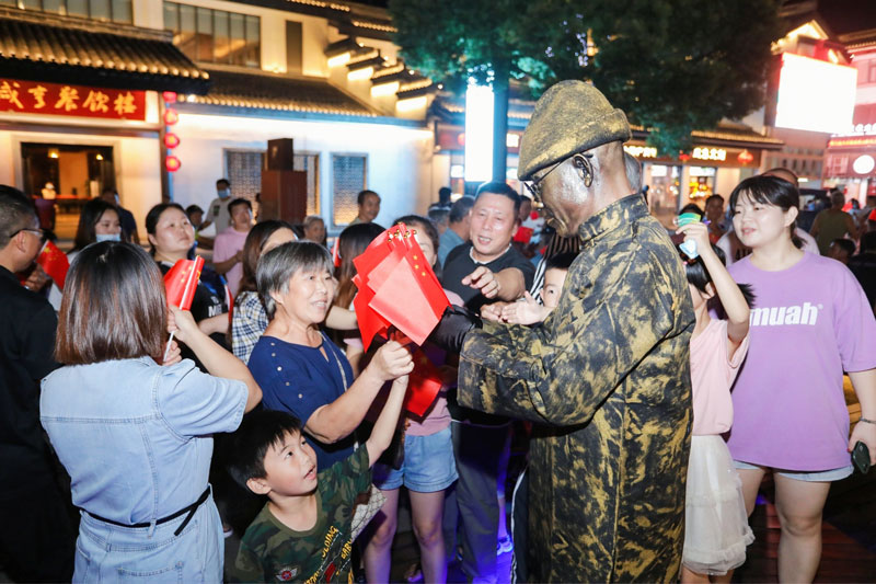 10月1日晚,紹興的魯迅故里步行街與迎恩門風情水街燈光閃爍、游人如織,一派歡樂祥和的國慶氛圍。各地的抖音達人、非遺傳承人、文藝愛好者展示著精彩紛呈的街頭藝術活動,帶給市民游客“不期而遇”的驚喜;來自抖音大咖的直播消費券活動以及最具煙火氣的線下市集活動,傳播“最紹興”的城市魅力。而這也拉開了國慶假期2021“抖in紹興”城市系列宣傳活動的盛大序幕。