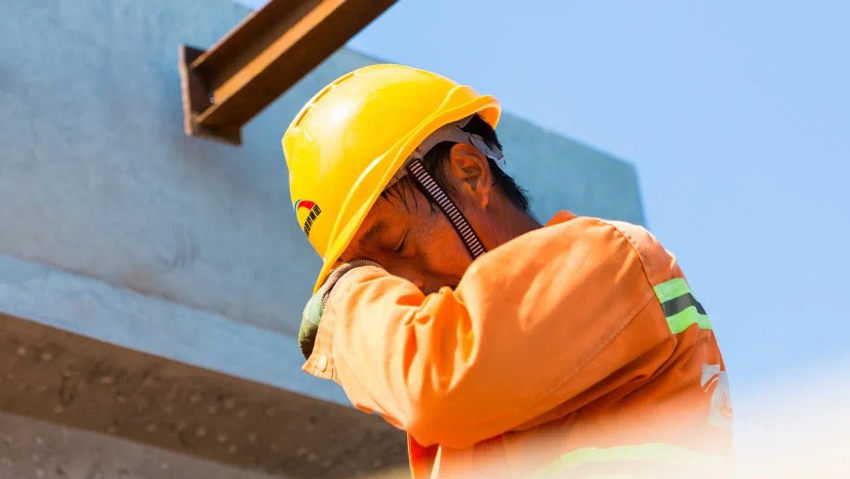 在紹興柯橋區濱海工業區馬鞍互通主線10號蓋梁的施工現場,也是一片繁忙的景象,項目部三分部產業工人們在加緊進行預應力鋼絞線穿束工作,廖榮洋就是這里的建設者之一。烈日下,廖師傅臉上的汗水不時掉落地上,但他手中仍靈活地使用著向鋼絞線穿束機,將鋼絞線穿束到波紋管內。廖師傅來自安徽,今年51歲,他已經一年多沒回老家了,“工程不完工,我們不休假,來之前我就有了心理準備,既然來了我就會干好!