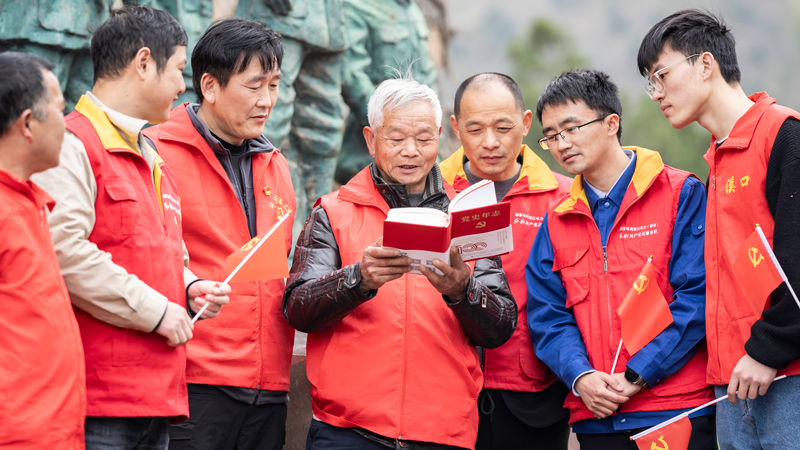 國家電網浙江電力(奉化)紅船共產黨員服務隊走進地處四明山區的革命老區溪口鎮壺潭村,在守墓人的帶領下學黨史。汪晴攝