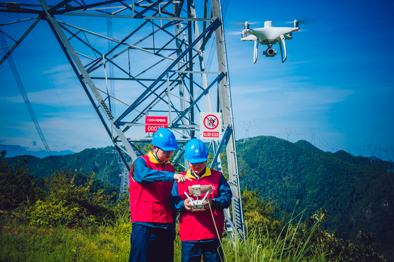 國家電網浙江電力(麗水)紅船共產黨員服務隊使用無人機對轄區輸電線路進行智能巡檢。樓拓斌攝