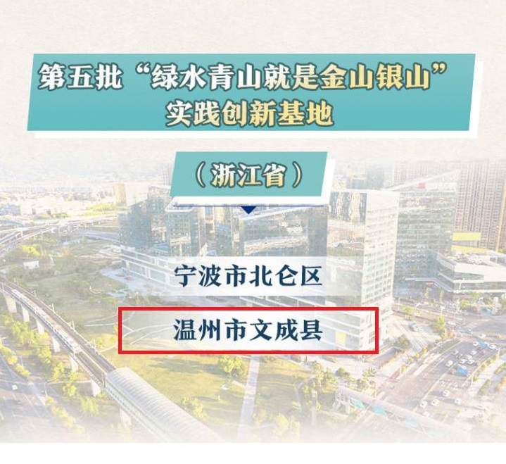 浙江共11地入選,其中溫州文成縣入選第五批“綠水青山就是金山銀山”實踐創新基地。