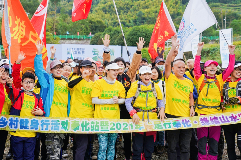 “這里生態好、空氣好,一下車就覺得整個人都放松了!斌H友吳國勇與十來位朋友組團來到大堰參加綠色健步走活動。葛賢娟自3年前第一次來大堰徒步后,就愛上了這里,如今每年都要來走上幾次,“每次都能看到不同的風景,春有油菜花,秋賞稻田!