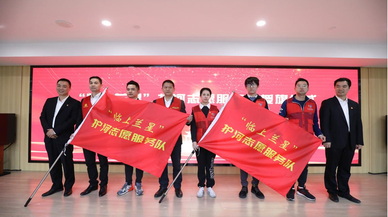 “臨上蘭星”護河志愿服務隊接受授旗。受訪者供圖