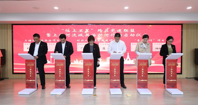 儀式現場,臨平區、上城區分別以星橋街道和丁蘭街道為試點,簽訂跨區黨建聯盟共建協議,并共同發布“上塘河流域共治項目”“村社人才共育共建項目”“青春共行項目”三個跨區黨建聯盟共建項目。此外,上塘河流域的共治護河行動也將由雙方共同組建的“臨上蘭星”護河志愿服務隊完成。