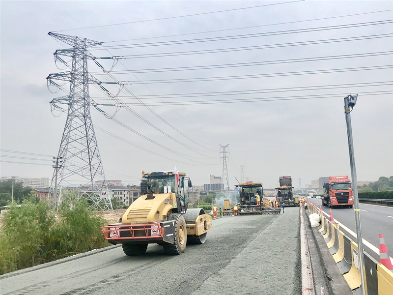 10月25日,在浙江交通集團義東高速涉甬金高速拼寬段施工現場,2臺攤鋪機梯隊作業、運料車、壓路機緊密配合,在現場技術人員的指揮下,水穩攤鋪施工正有條不紊進行著。這也標志著義東高速項目涉甬金高速拼寬段正式進入路面水穩攤鋪施工階段,為后續湖田樞紐和涉甬金高速拼寬施工奠定了基礎。