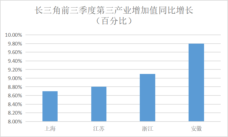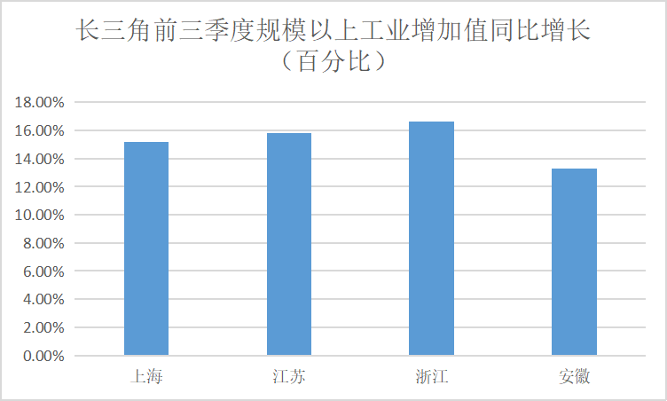 從前不久發布的前三季度經濟數據來看,江蘇GDP84895.7億元,同比增長10.2%;浙江GDP52853億元,同比增長10.6%;安徽GDP31874.8億元,同比增長10.2%;上海GDP30866.73億元,同比增長9.8%。長三角GDP總量依然領跑全國城市群。