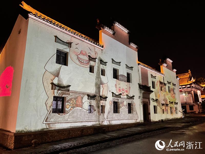 靈峰街道劍山村下轄的蔓塘里自然村,就是安吉建設美麗鄉村的一面鏡子。漫步在蔓塘里的鄉間公路上,一路白墻黑瓦,滿目清雅幽靜。復建的古宅,仿古戲臺,粉刷一新的農家墻院,白日里的蔓塘里滿滿都是獨屬江南水鄉的婉約溫柔,但當夜幕降臨,五光十色的絢爛燈光瞬間點燃蔓塘里的熱情,光影和音樂讓這座村莊“動”了起來,流光溢彩的美景讓蔓塘里變身為一座“不夜城”。