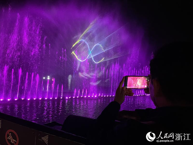 游客在“蔓塘水秀”前駐足觀看、拍照。人民網 王蕭蕭攝
