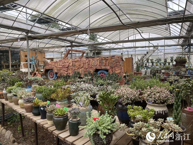 寒舍多肉農場內擺放著上萬盆形態各異的多肉植物。人民網 王蕭蕭攝