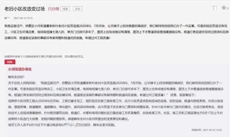 聚焦群眾“急難愁盼”,今年,針對“領導留言板”上反映的老舊小區改造難的問題,浙江第一時間作出回復并提供解決辦法。有速度有溫度,高效優質的辦理獲網友好評。