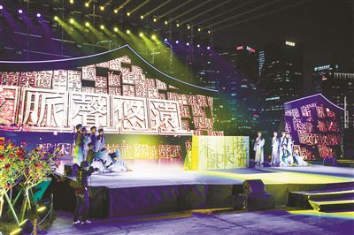開幕當晚,“宋風物語”非遺(文創)大觀園的非遺市集在城市陽臺展出,包括6個國家級、省級非遺展位,30家杭州非遺展位,20家文創展位,6個非遺手作以及18家紹興展位。