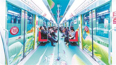 不僅如此,11月3日起,在杭州地鐵1號線,以“2021宋韻文化節”為主題的地鐵專列也正式亮相,行駛時間一個月。這是一趟宋韻全景包車,共有6節車廂,每節車廂都有一個小主題,包括宋代的服飾、美食、生活、演藝、詩詞、文創等。在車身、車頂和車地,全面布設了宋韻文化的元素,就像移動的展廳一樣,用生動且亮眼的形式,傳遞宋韻文化的美感與內涵。