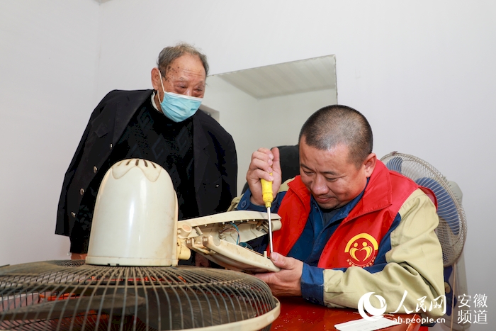 “培紅志愿服務隊”志愿者為小區居民修理家電。人民網 張俊攝