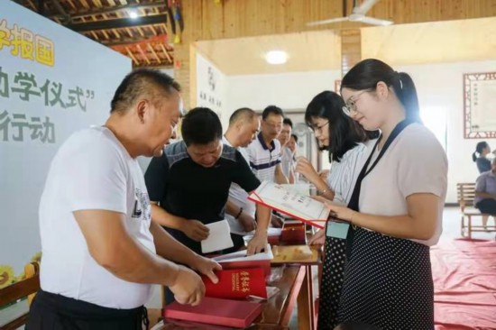 每當開學之際,婺城區蔣堂鎮洪村村都會在村文化禮堂舉行一場隆重的助學儀式。儀式上,洪村村助學基金會成員領讀洪氏祖訓和家規,并為考入高等院校的優秀學子頒發獎學金。學子們接過助學基金會成員手中的接力棒,向新入學的小朋友們分享學習方法。這樣的助學儀式已經連續開展了6年,既傳承了洪村崇學重教的優良家風,又激勵了一代又一代的學子勤學報國,反哺家鄉。
