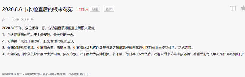 面對網友的“急難愁盼”,溫州市甌海區景山街道辦事處立即作出響應,并表示,經過詳細的調查了解,確定反映情況屬實。同時,該街道辦事處誠懇接受網友批評,并提供了解決辦法。