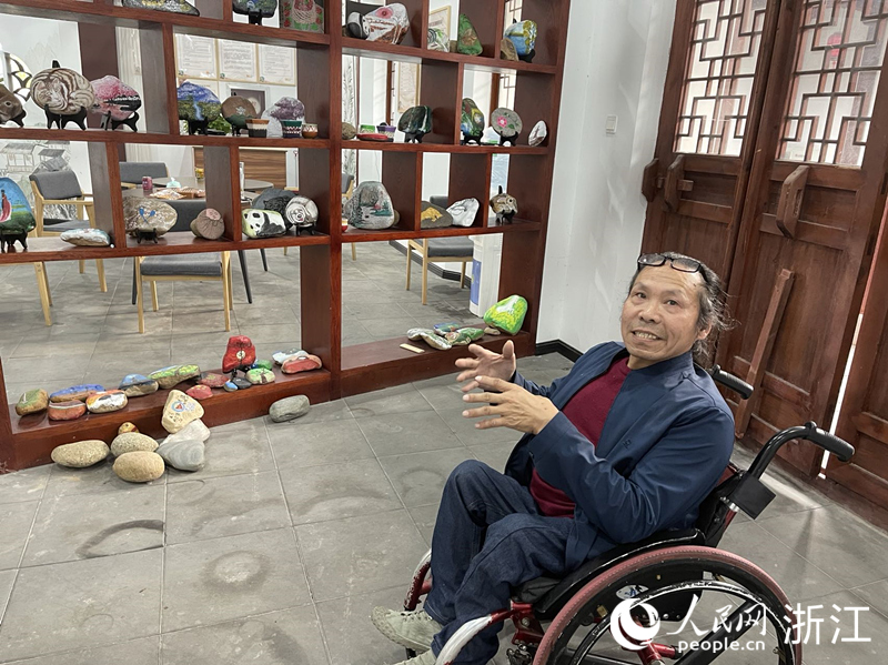 殘疾人之家共展示了方淼鑫與學員們的上百件竹刻、石畫、素描作品,成為了志愿者和游客們來到百丈鎮必“打卡”的一站。方淼鑫說,周末一天能接待四五十位參觀者,不少參觀者都會通過購買工藝品的方式來獻一份愛心!白髌肥圪u的全部收入都歸這些學員所有,這樣他們學習起來也更加有動力!狈巾钓谓榻B,他還會承接一些鎮上企業外包的手工活,比如安裝圓珠筆、穿鞋帶、為瑜伽墊貼標等,交給學員們來制作,既讓他們消磨了時間,也能賺點零花錢。