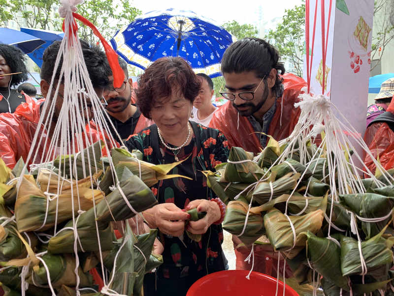 外籍友人學習包粽子。溫州市海外傳播中心供圖