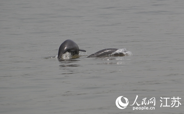 長江靖江段頻繁發現江豚戲水。