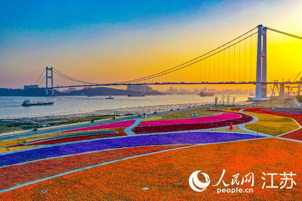 靖江把廢棄江岸線打造成音樂花海廣場。盛義攝