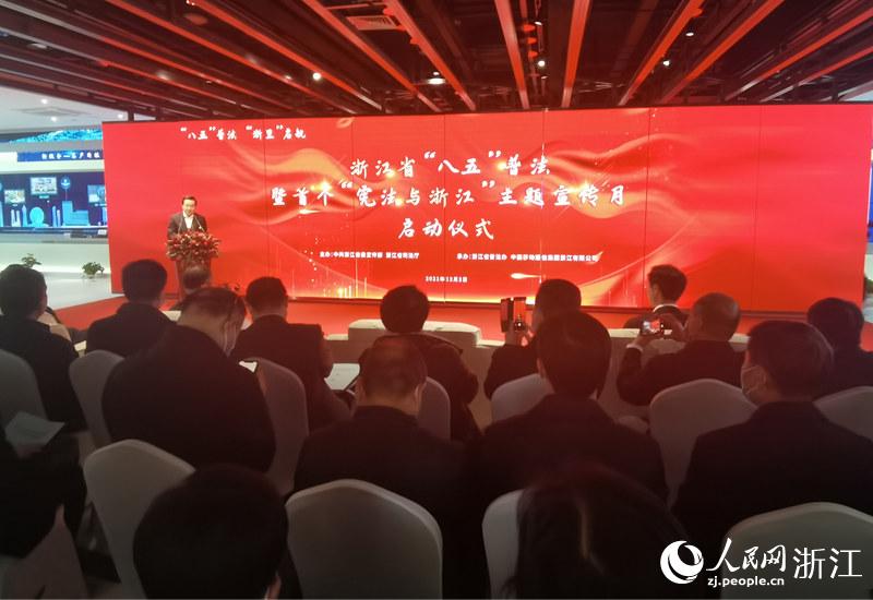 浙江“八五”普法暨首個“憲法與浙江”主題宣傳月活動啟動儀式。人民網 張帆攝