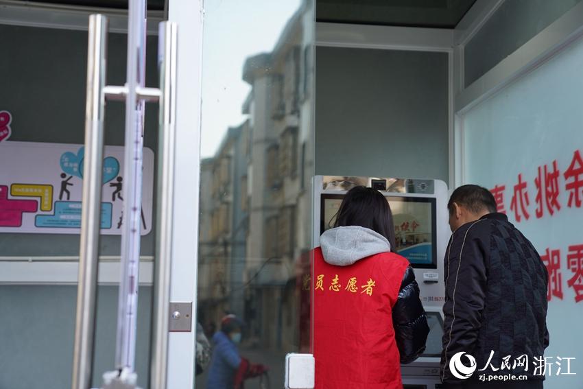 志愿者正在幫助居民辦理業務。人民網 郭揚攝
