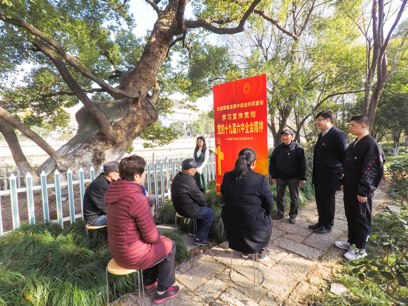 石橋街道組織機關干部、黨員骨干作為主力軍,深入社區、企業、工地等場所開展十九屆六中全會精神解讀和宣講活動,通過一級帶動一級形成全街道層層深入學習的良好局面。