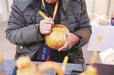 “從小耳濡目染,十多歲的時候正式開始學習,到現在70多歲了,對這門手藝可以說充滿了感情!弊鳛榻B興市級非遺項目火烙畫葫蘆的傳承人,王繼達每年都來參加非遺集市。2017年起,他還在諸暨技師學院開設了拓展課程,為工藝美術專業的學生傳授烙畫葫蘆技藝。在王繼達看來,非遺傳播的渠道和方式不斷拓展,有助于這一經受歷史鍛造的技藝煥發出旺盛生命力。