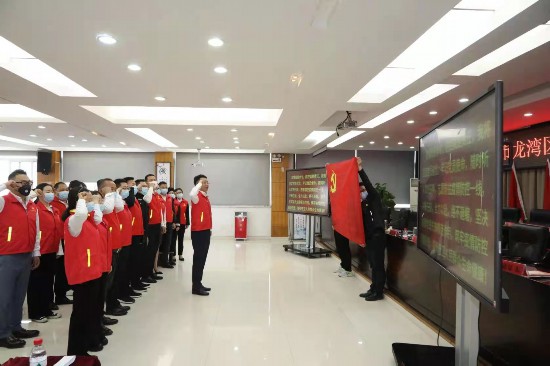 “疫情就是命令,防控就是責任,我將堅定黨員信念,牢記黨員使命,隨時聽從黨的召喚,沖鋒在前,全力以赴……”溫州龍灣區瑤溪街道選舉的區黨代表疫情防控臨時黨支部成立,在黨旗下鄭重宣誓,吹響“黨旗飄揚,同心防疫”行動集結號。