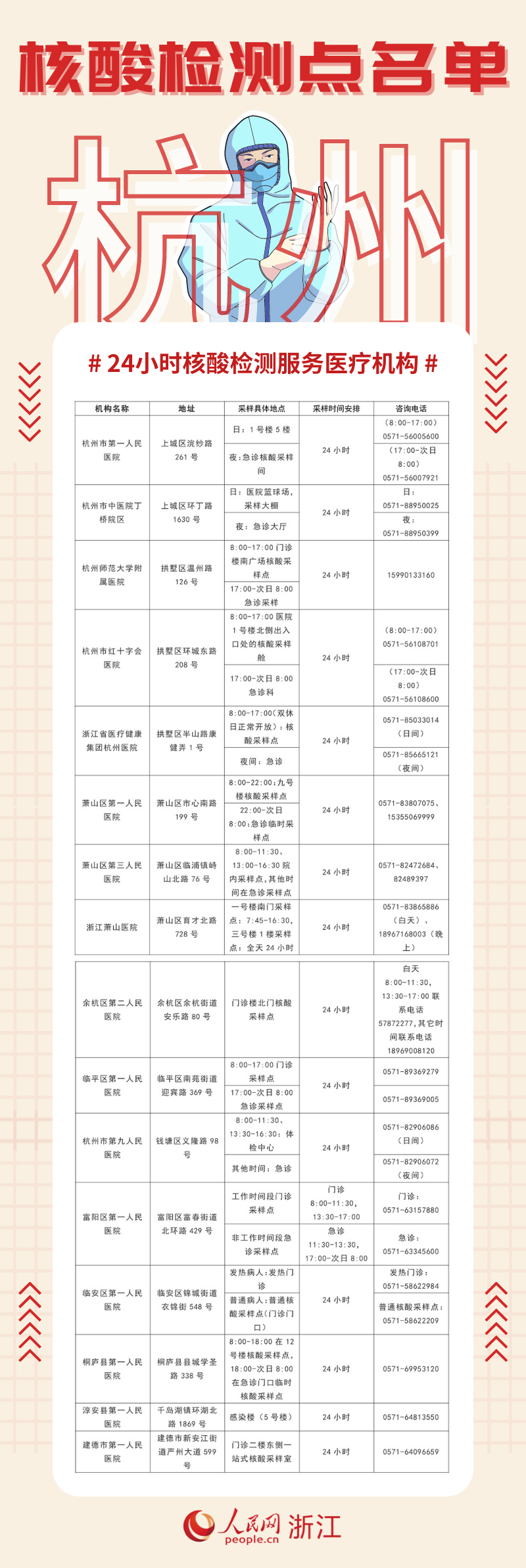 連日來,浙江寧波、紹興、杭州三地出現多例新冠肺炎確診病例和無癥狀感染者。當前疫情形勢復雜嚴峻,如何守住“綠碼”成了不少市民關心的問題。與此同時,市民們做核酸檢測的需求也相應增多,人民網浙江頻道梳理了杭紹甬三地24小時核酸檢測服務醫療機構和綜合服務點名單,助力大家守好“綠碼”。