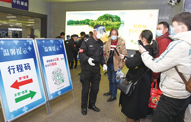 近日,鐵路金華站出站口分別設置行程卡“帶*旅客”通道與“不帶*旅客”通道。旅客離開車站需出示健康碼和行程卡,行程卡帶星號*,則要進行相關登記,如未到訪過疫情中高風險地區,正常通行不受限制,如涉及中高風險地區,則按具體人員、具體情況,采取不同的防疫措施,有些旅客還需要出示48小時內的核酸檢測報告。(李建林)