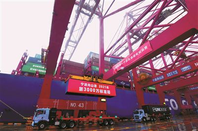 “這是2011年以來中國第二個突破3000萬標準箱的港口。中國加入世界貿易組織20年,世界貿易中心加速向中國轉移,有力地推動了寧波舟山港集裝箱業務的發展!鄙虾ν饨涃Q大學教授何歡浪評價道。
