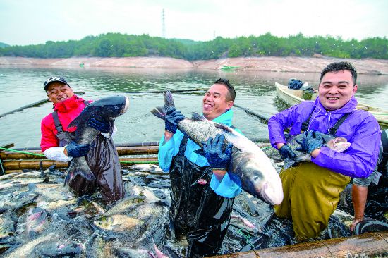近日,金華永康市上黃水庫里,一年一次的冬季捕魚開始收網,F場魚躍人歡,一派豐收場面。永康市上黃水庫是當地重要飲用水水源保護地之一,一直“以魚養水”“潔水養魚”,采取生態放養、增殖放養、捕撈銷售模式,實現生態保護、水質保護、漁業收益三方“豐收”。(胡肖飛)
