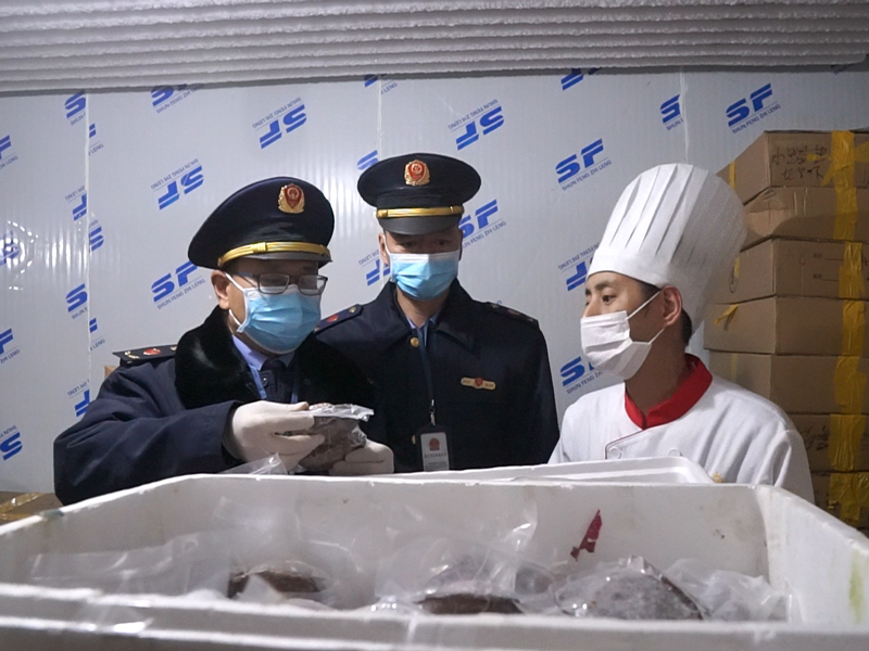 “這個鮑魚是廣州的嗎?”“對,這是新鮮的買過來后,自己加工、包裝過的!薄叭绻羞M口冷鏈食品,要特別注意……”在該縣裕錦大酒店,永嘉縣市場監執法人員仔細檢查近段時間以來的食品及原料采購臺賬,并詳細詢問冷庫內各類食材的產地等相關信息。酒店行政總廚潘光耀告訴記者,考慮到防疫期間的食品安全問題,目前他們采購的基本上是國產食材,國產的東西也挺好的,比較安全。