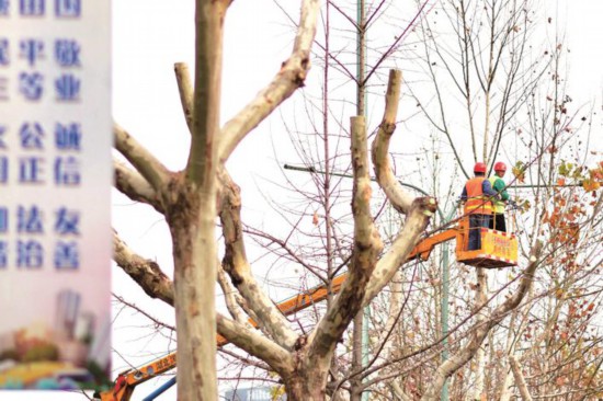 12月21日,在嘉興市區中環南路紡工路路口,施工人員正在遷移苗木。由于中環南路紡工路路口晚高峰車流量較為集中,道路通行壓力大,目前交叉口車道數量滿足不了要求,為緩解擁堵現狀,一建設公司根據嘉興市治堵辦安排,對中環南路紡工路路口實施改造。(孟多多)