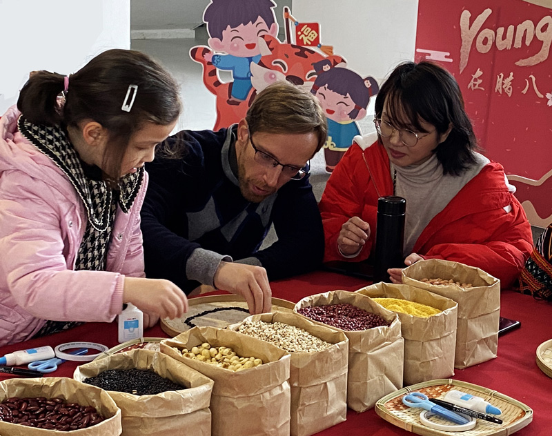 品讀經典詩詞、體驗民俗活動,共話臘八習俗。臘八前夕,“songwencheng”2022年度國際網絡傳播活動在僑鄉溫州文成啟幕,文成海外傳播使者西蒙、eve等國際友人走進僑鄉文成悅陽國際幼兒園,和數個華僑家庭共同打卡體驗臘八民俗活動,與海內外網友線上線下同步品味鄉愁——“媽媽的味道”,領略傳統年味風情。