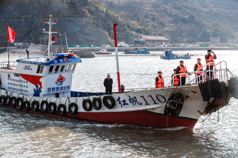 “我們是羅家岙‘紅帆110’號船,請靠過來,需要登船進行安全宣傳……”1月10日是第二個“中國人民警察節”,在舟山市岱山縣衢山鎮萬良漁港周邊海域的海面上,岱山縣公安局羅家岙派出所民警陳家振所駕駛的警船,緩緩向一艘返航輪船靠近。