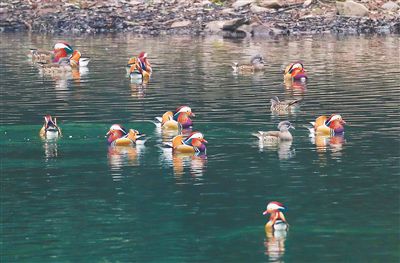記者1月12日從寧波市生態環境局海曙分局獲悉,在該局日前組織開展的四明山區域生物多樣性本底調查工作中,調查人員在龍觀鄉外牌樓水庫發現了大規模野生鴛鴦種群,數量多達300只,這是寧波市海曙區有記錄以來發現的最大規模野生鴛鴦種群。