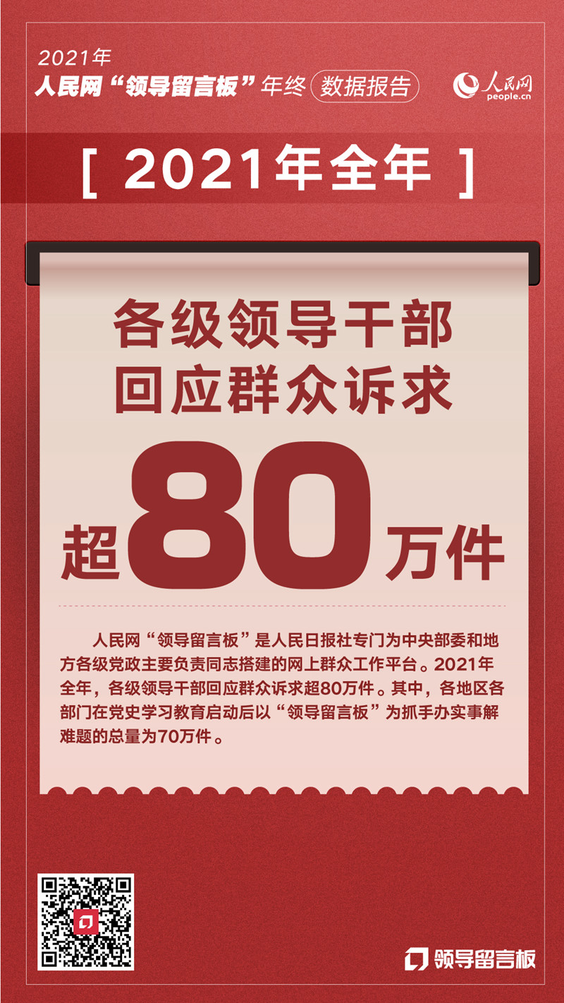 人民網“領導留言板”發布2021數據報告 超80萬件群眾訴求獲回應