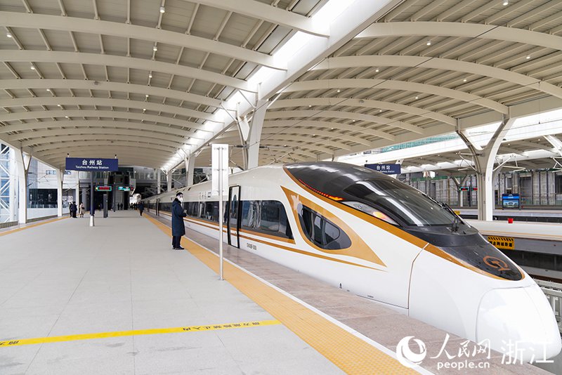 1月8日,杭臺高鐵首趟列車即將駛出。人民網 秦文攝