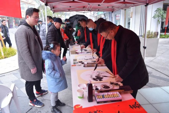 此外,龍港市美術家協會、市書協教育專業委員會成員現場寫春聯、作國畫也是備受市民青睞。